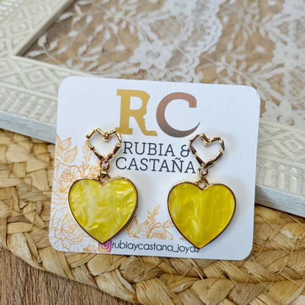 Aros dorados hipoalergénicos de corazon con strass de colores.