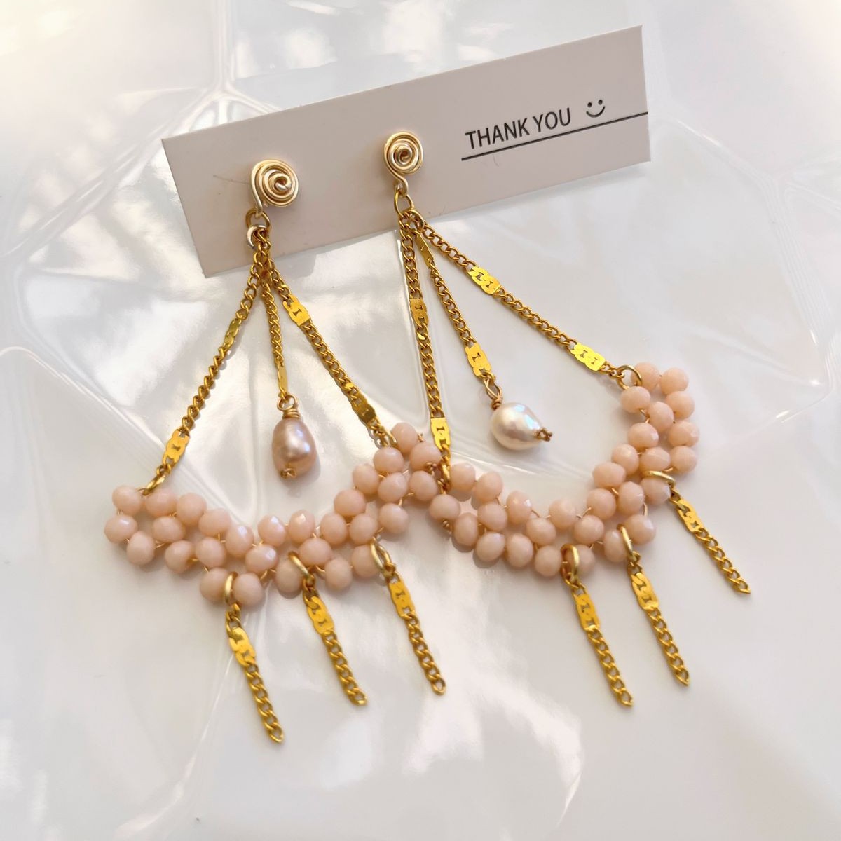 AROS CON BASE CHAPADA EN ORO Y ACERO DECORADA CON PERLA DE RIO Y CRISTALES TEJIDOS