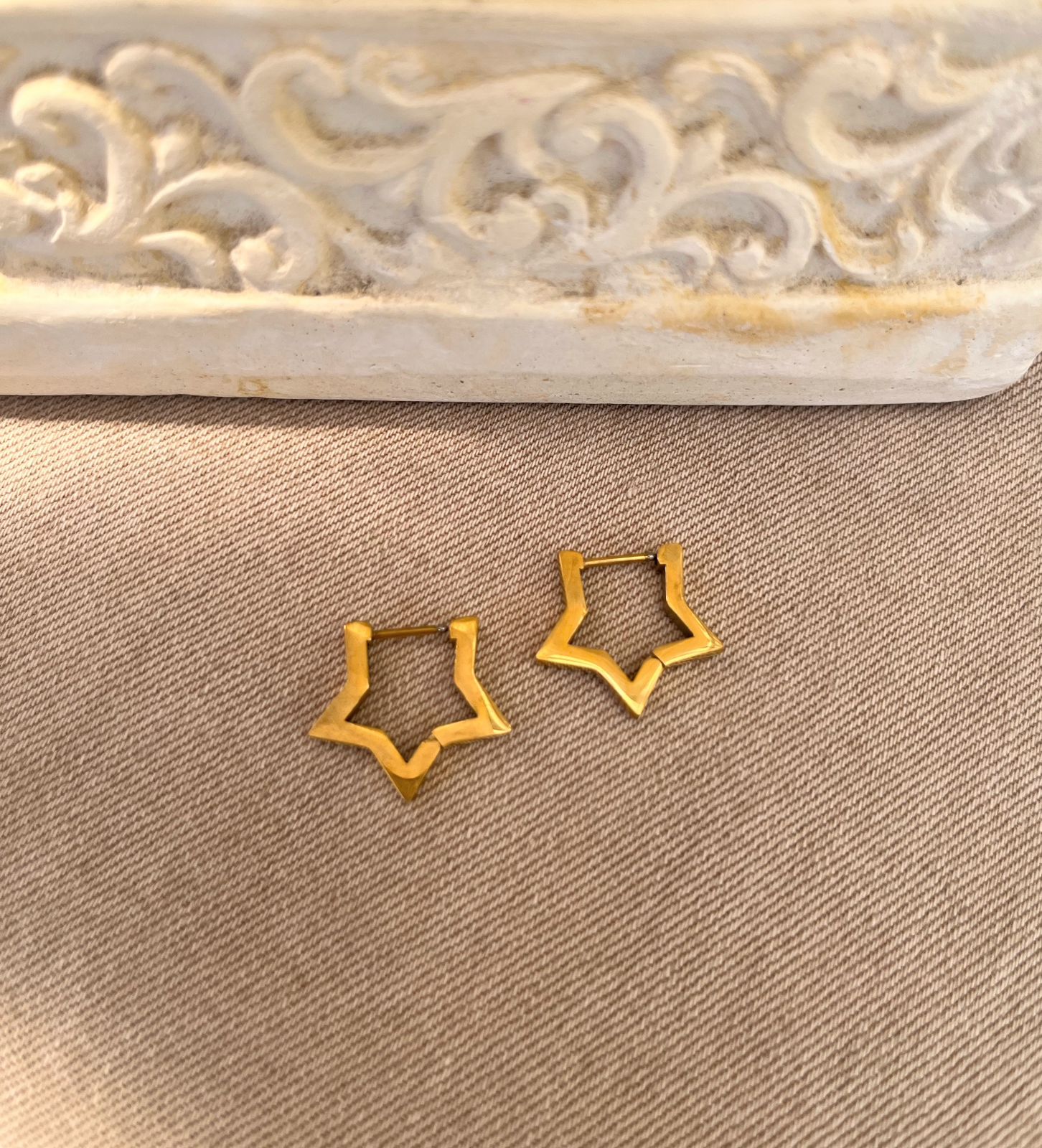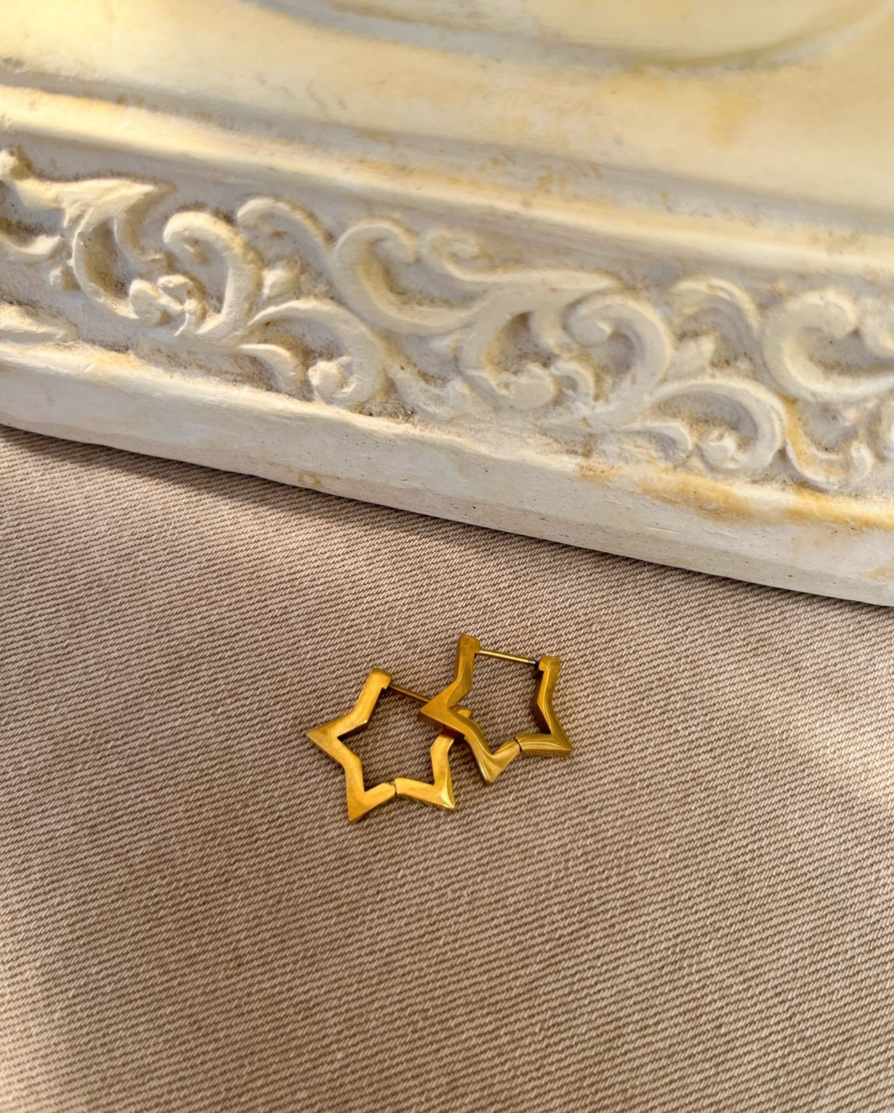 Aros de acero inoxidable en tono dorado con forma de estrella.