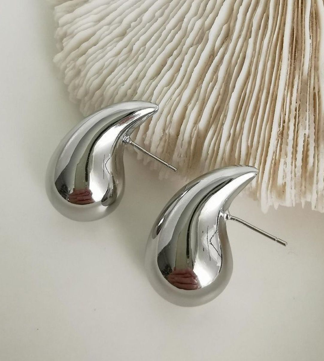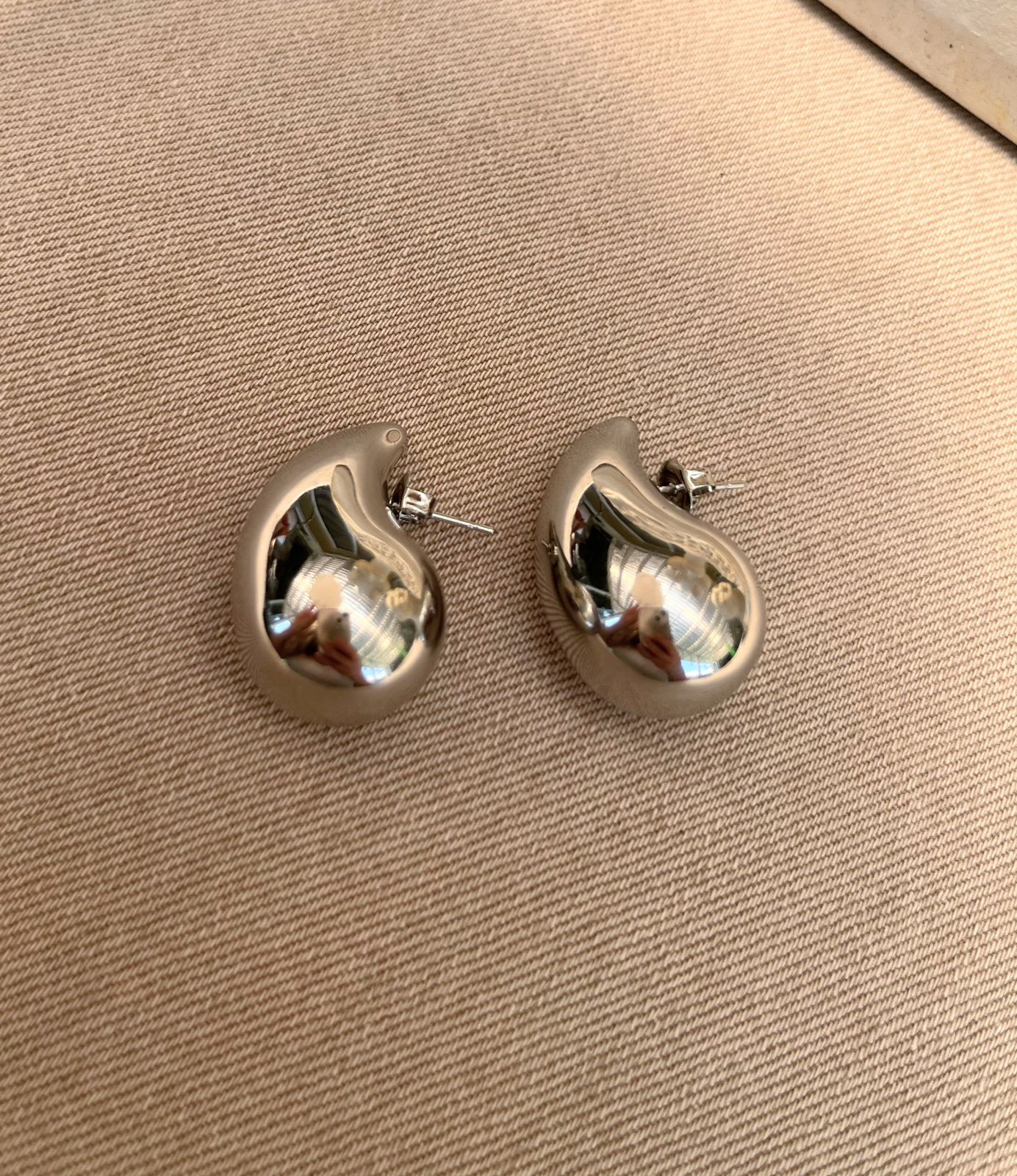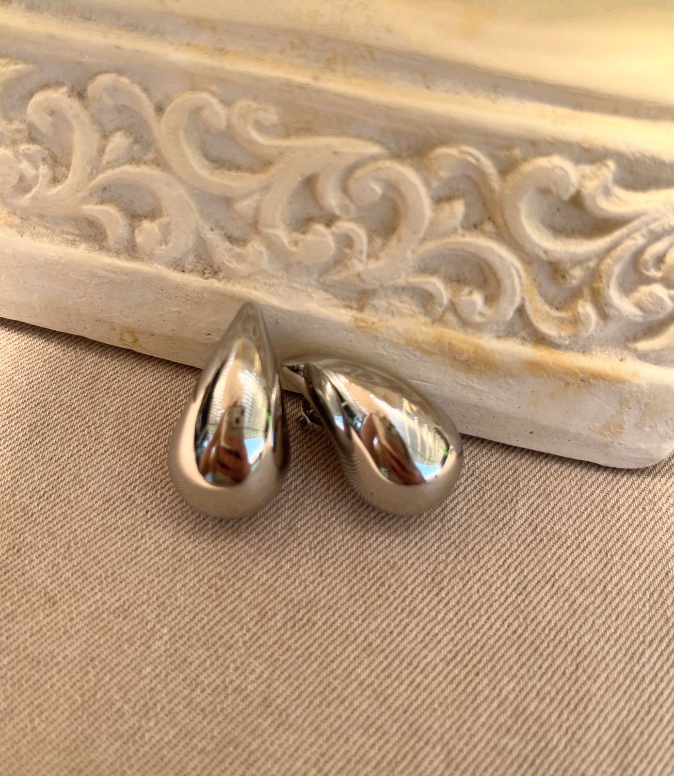 Aros de acero quirúrgico en tono plateado estilo gota robusta.