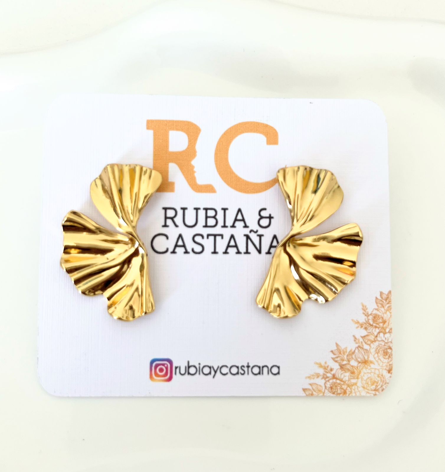Aros bañados en oro, con forma de pétalo dorado irregular.
